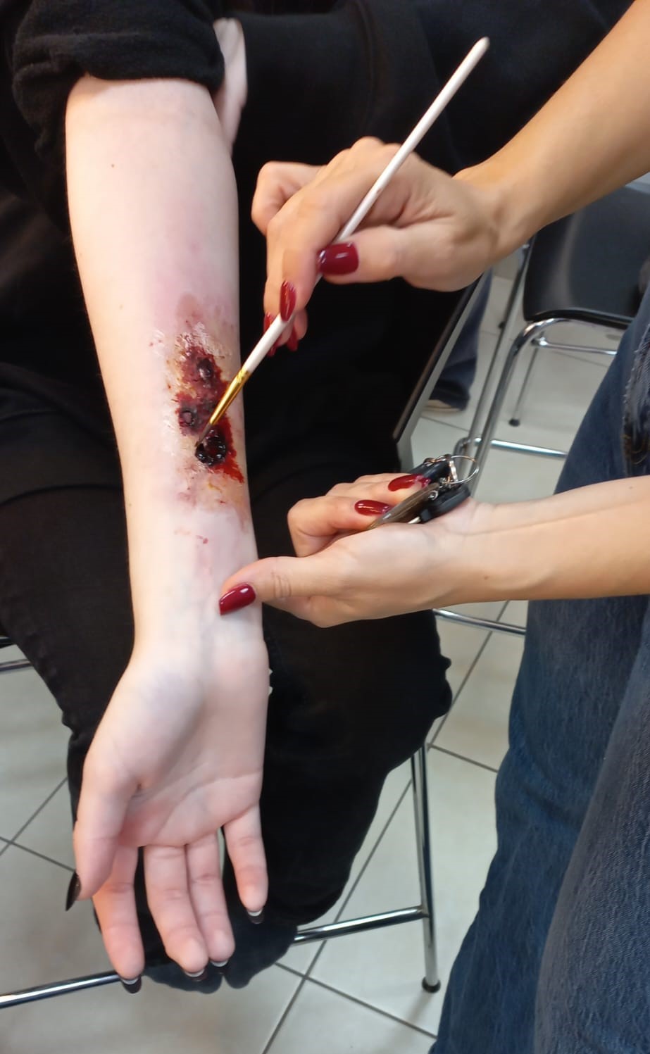 We also watched the make-up students practise painting on wounds for a First Aid demonstration.